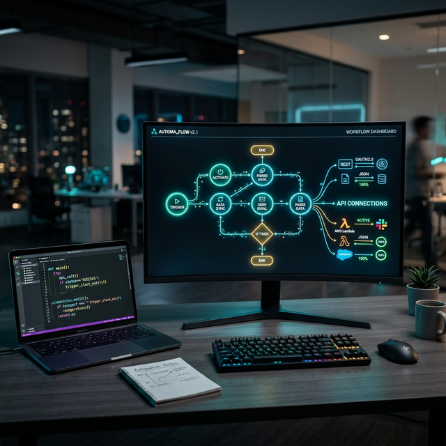 We design and implement intelligent workflow automation systems that connect your APIs, databases, and third-party tools — eliminating repetitive manual work and letting code handle your business logic 24/7.